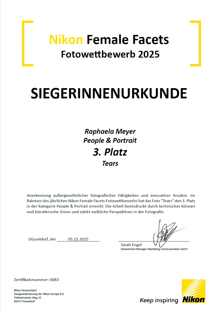 Mit diesem Bild von Audrey (Instagram: @audreyomosh) habe ich am Nikon Female Facets Wettbewerb teilgenommen und bin unter den Top 3 in der Kategorie "People & Portrait" gelandet. Hier geht es zur Gewinnerinnengalerie: Nikon Female Facets Fotowettbewerb 2025